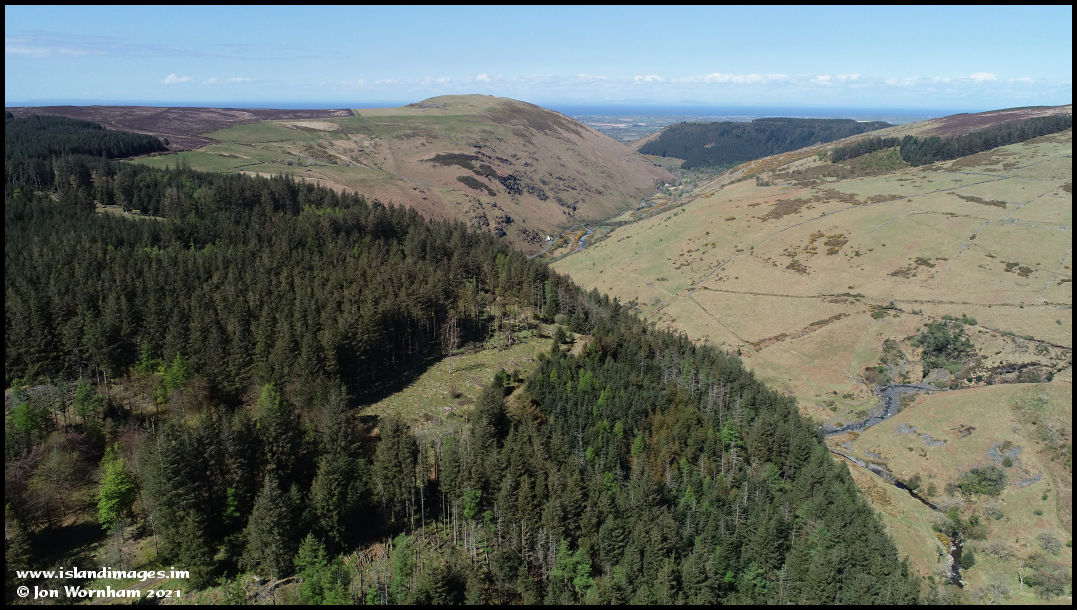 Looking across Tholt-y-Will Plantation and down Sulby Glen.