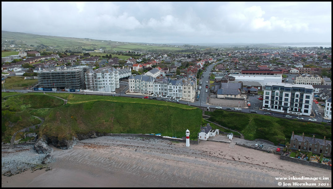 A higher level view looking back towards the lighthouse and along Bay View Road.