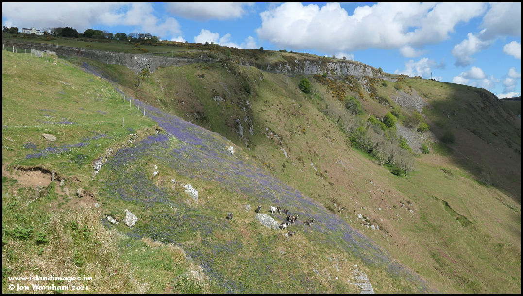 Just airborne and an impressive patch of bluebells growing near the top of the cliffs. The wild goats didn't appear at all impressed by either me or the drone and soon made an orderly retreat to other parts.