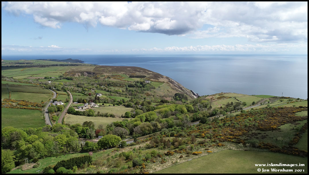 Looking across the Dhoon Glen with a shadowy Maughold Head in the distance.