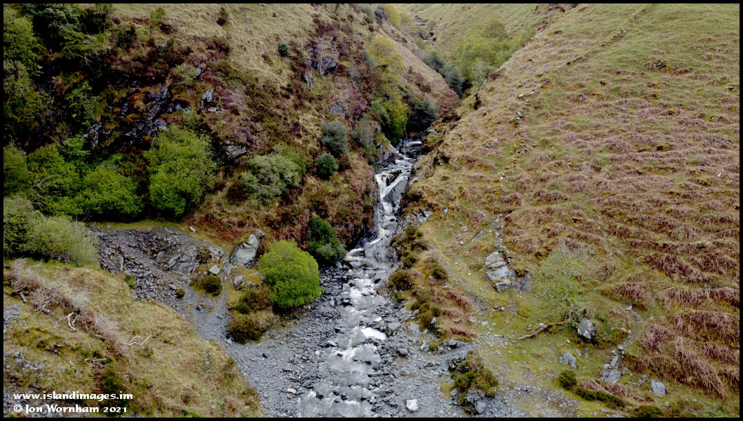 A mini waterfall where the Block Eary stream leaves its narrow rocky gorge.