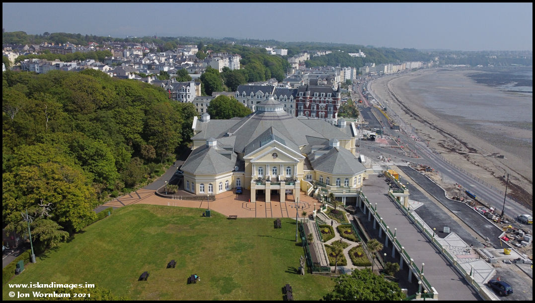 Climbing higher to look past the Villa Marina and along the beach at low tide.