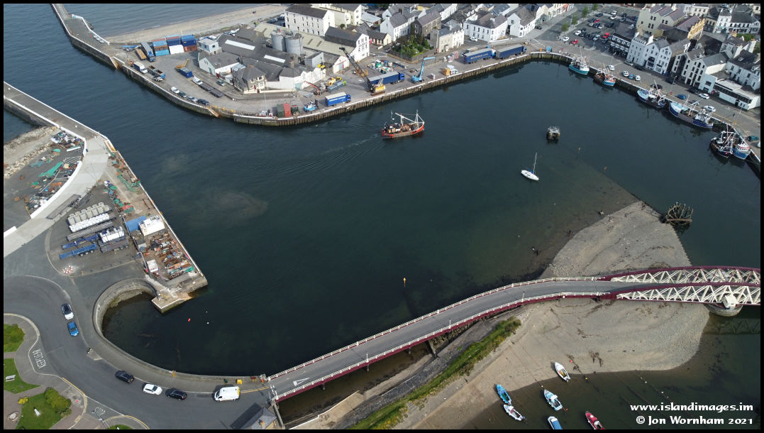 Looking down to the main basin of the outer harbour. No commercial ships in at the time, but a fishing vessel was moving across the harbour.
