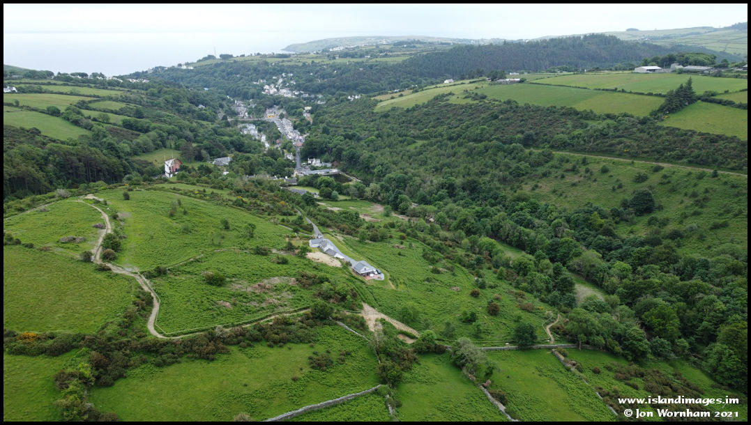 I've moved the flying location now to take a better look at the top end of the nature reserve. The path that climbs up from river level to the Agneash road can be clearly seen, but in time will vanish back into the landscape as it greens over.