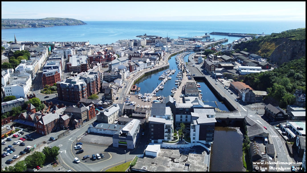 The inner harbour area, with the Douglas River passing on the right before vanishing briefly through a 'tunnel' under a car park.