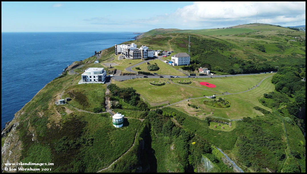 The upper area of Douglas Head with its large Remembrance Poppy and the Manx Radio building behind. During WW2 this whole area was 'out of bounds' to civilians and home to HMS Valkyrie.