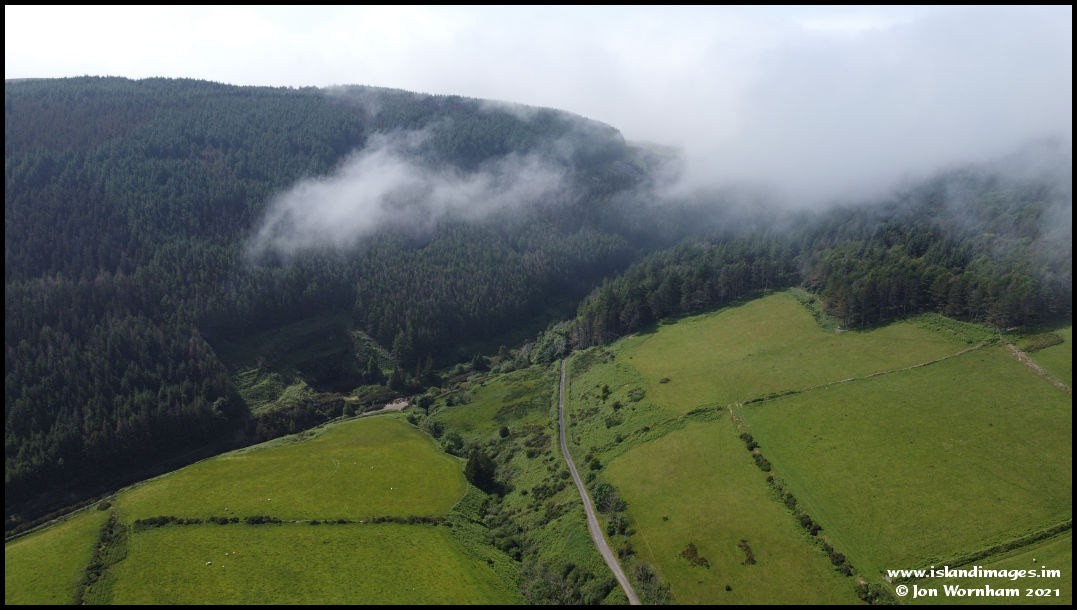 Looking down the valley into the fog. Somewhat confusingly, the top end is Glen Rushen, then it becomes Glen Mooar before turning into Glen Maye and reaching the sea!