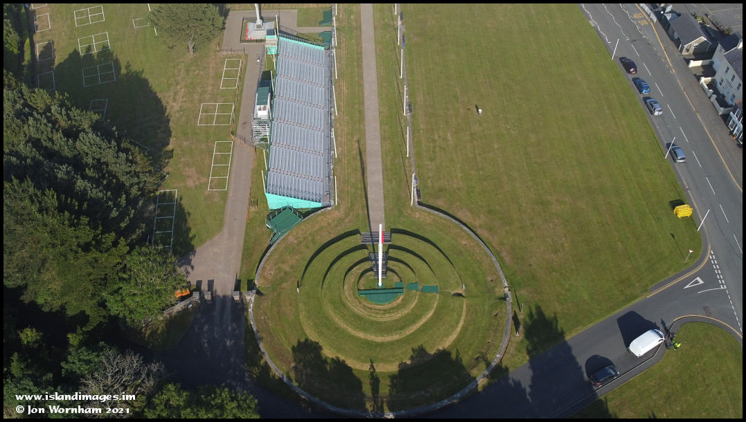 A semi vertical view of the Tynwald Hill mound.