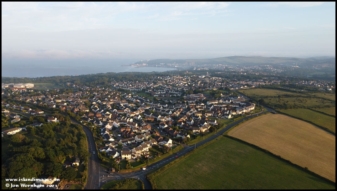Looking across Cronk-ny-Mona and Governor's Hill at sunset, with Douglas Bay in the distance.