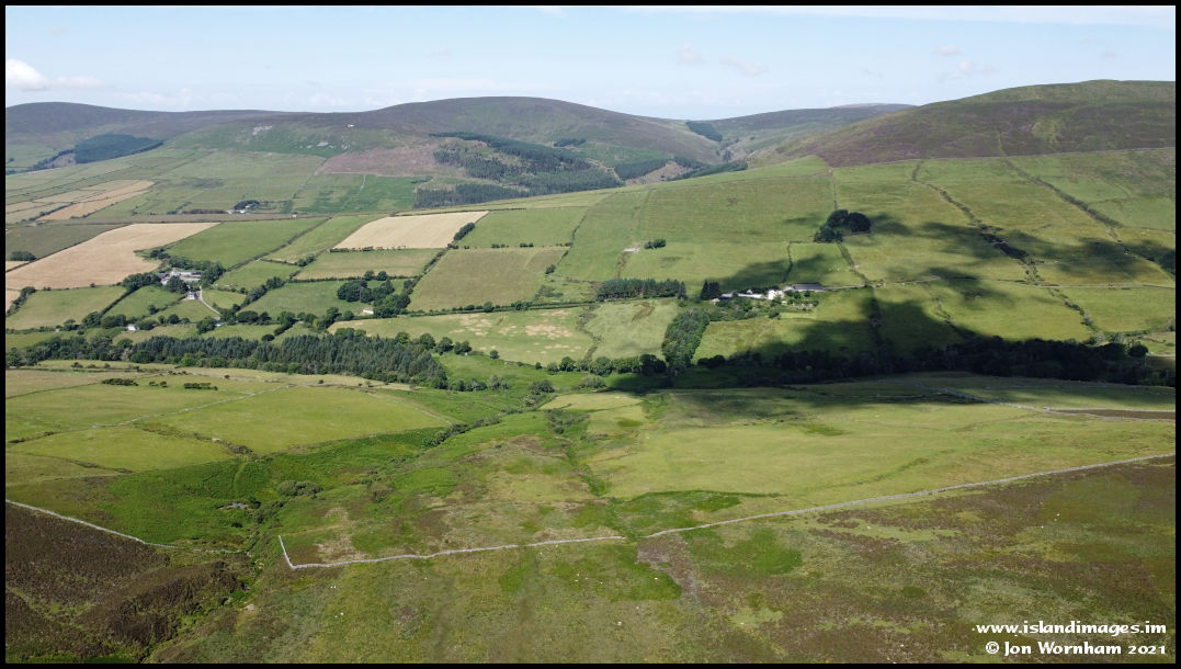 The view from overhead Slueau Ree, across the East Baldwin valley to Carraghan and Colden.