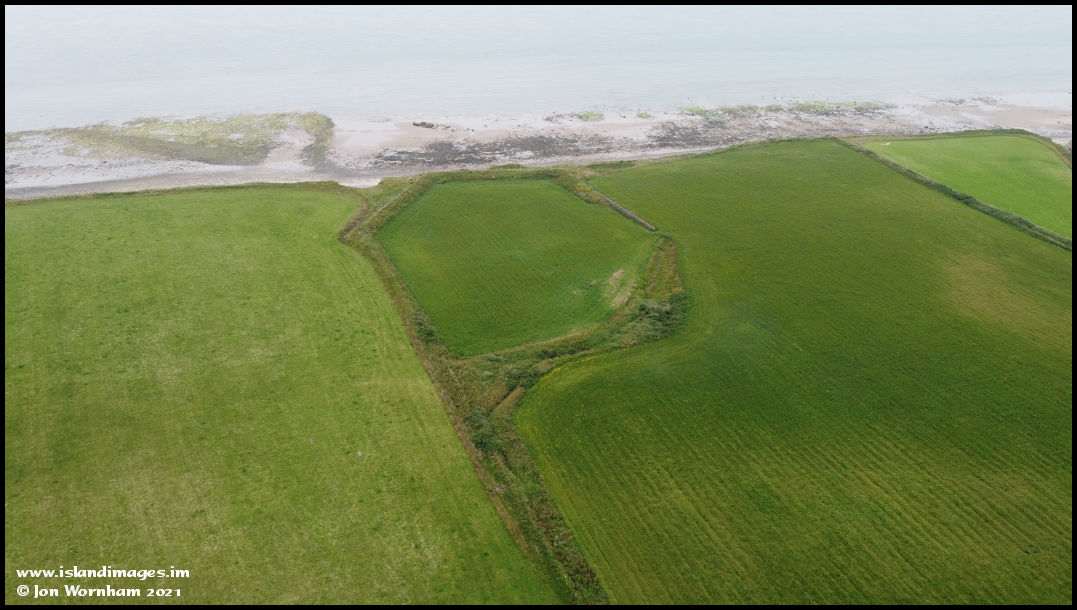 Between the church and the sea, with one section just holding on to the eroding clifftops is the former 'Turret Training Range' fro RAF Jurby, where air gunners learned their trade shooting against moving targets.