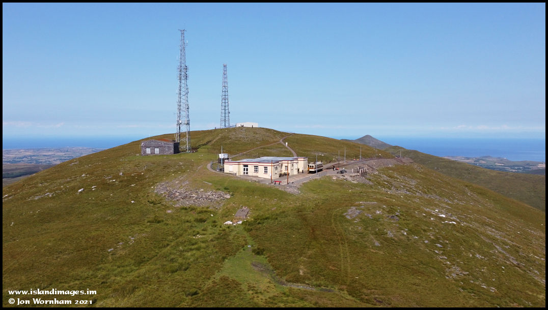 Just after take-off and a lowish level view past Snaefell Summit with North Barrule just visible in the distance.