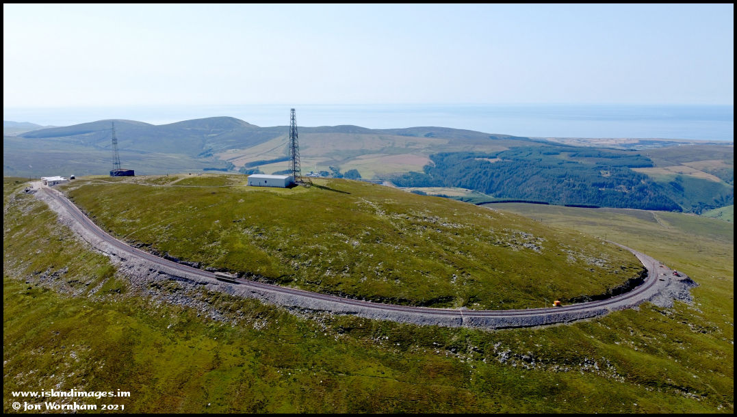 I'd wanted to get this shot for a while, showing the Snaefell Mountain Railway spiralling around the summit before dropping down to the Bungalow.