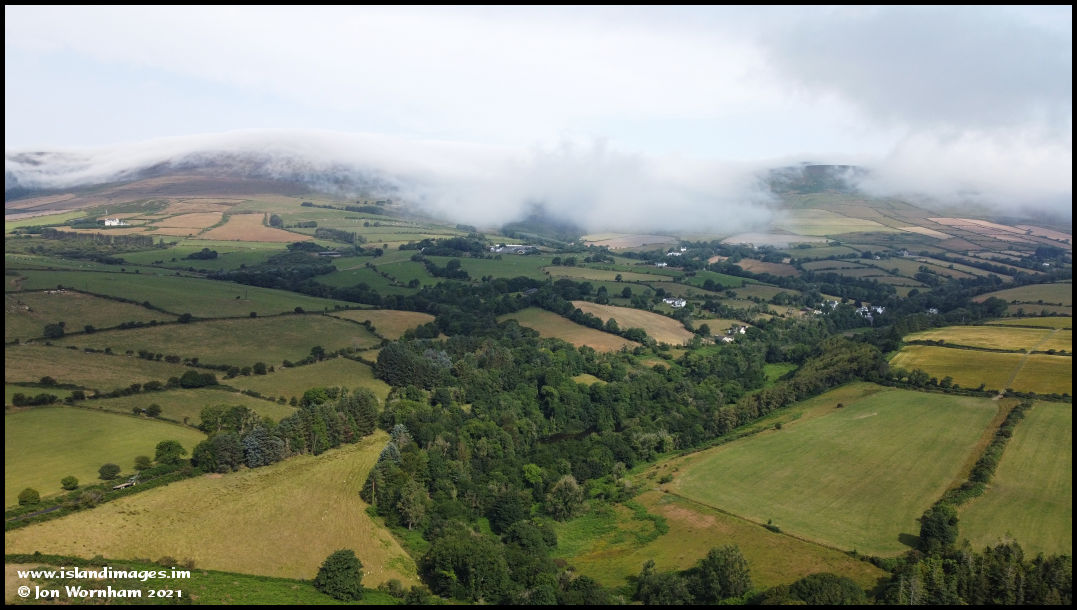 The cottages of West Baldwin are peeking out through the trees as the cloud drifts down from the Slieau Ruy ridge.