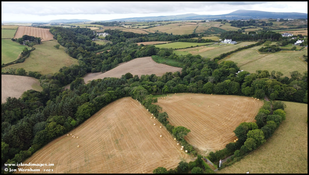 I love the small irregular sized fields we have in the Isle of Man! The Steam Railway line can be seen curving around at the bottom with Port Soderick station mostly hidden in the trees.