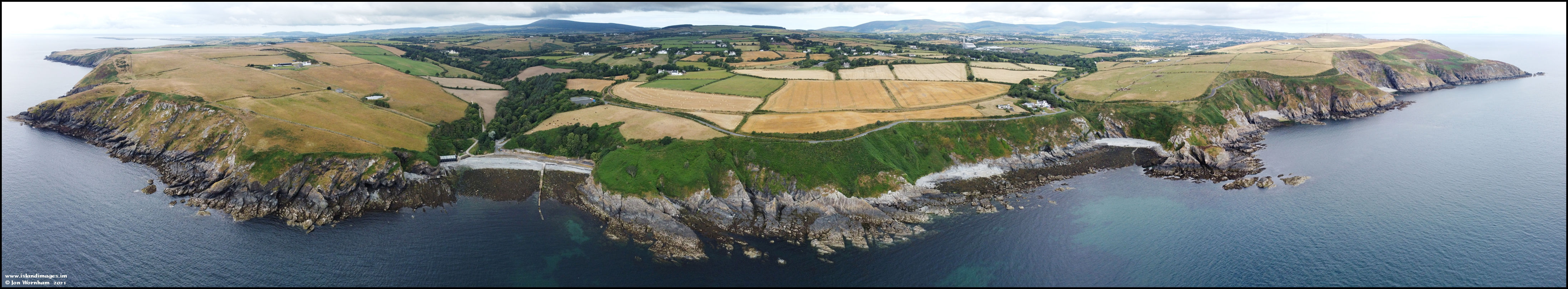 A stitched panorama centre on Port Soderick. Santon Head and Langness can be seen on the left, then the photo follows the Marine Drive with Little Ness on the right.
