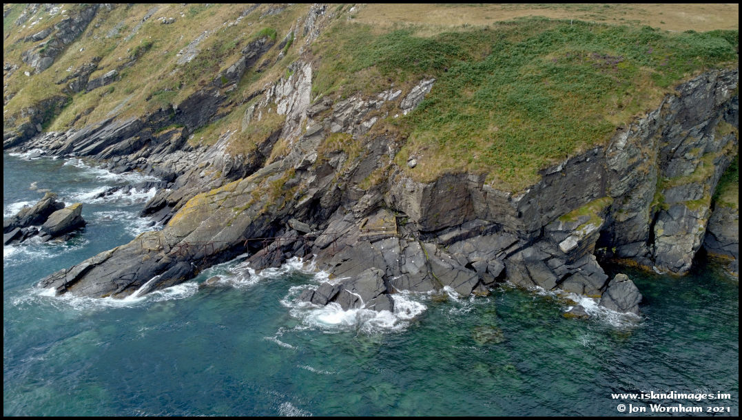 Looking down to the rocks where the southern walkway once took visitors past a cafe, 'Smuggler's Cave' and to the oysterbeds.
