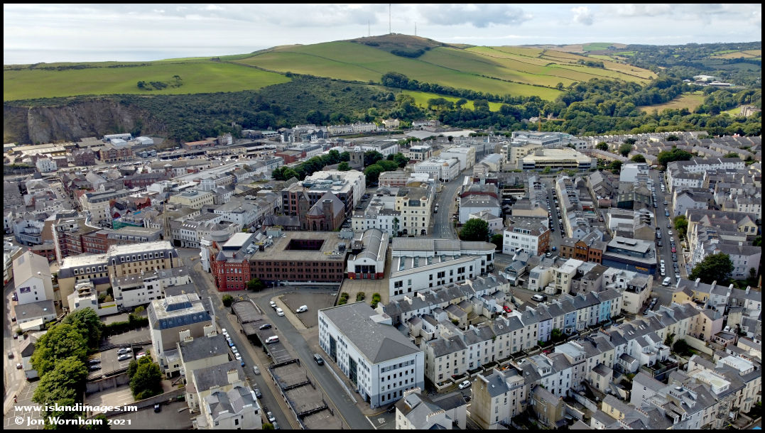 I would call this the 'government district' of Douglas, as many of the buildings in the centre of the picture contain IOM Government offices. You can't really see the 'Wedding Cake' building from this angle, although it does just appear.