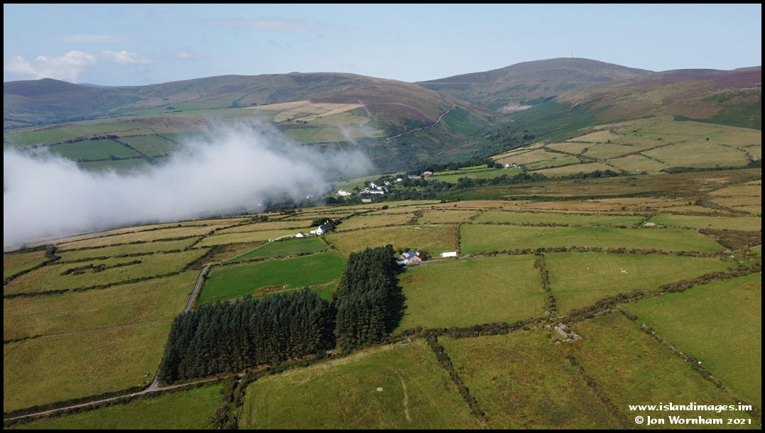 This is looking across the fields to Laxey Glen, where the sea fog is just reaching the village of Agneash. Snaefell is nice and clear in the distance though.