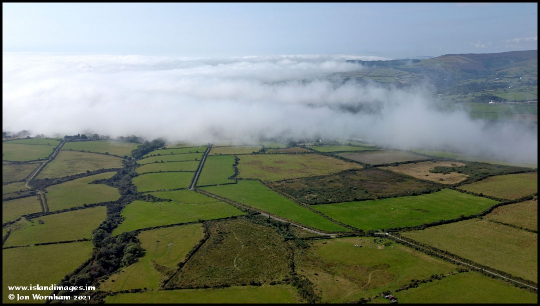 Turning the camera around to look down towards Laxey, which is hidden deep in the fog.