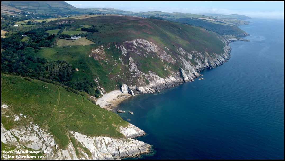 Turning the camera around to look north past the Dhoon Glen and towards Port Cornaa and Maughold Head.