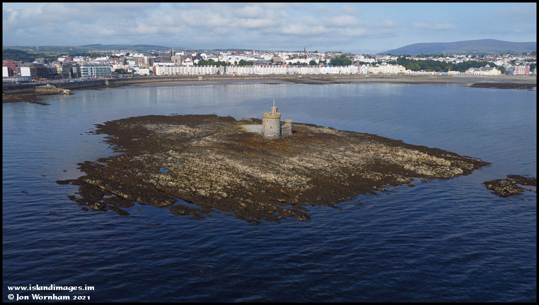 A lower level view across the Conister Rock to the town. The tide is at a mid state, at high tide the rock is completely covered by water.