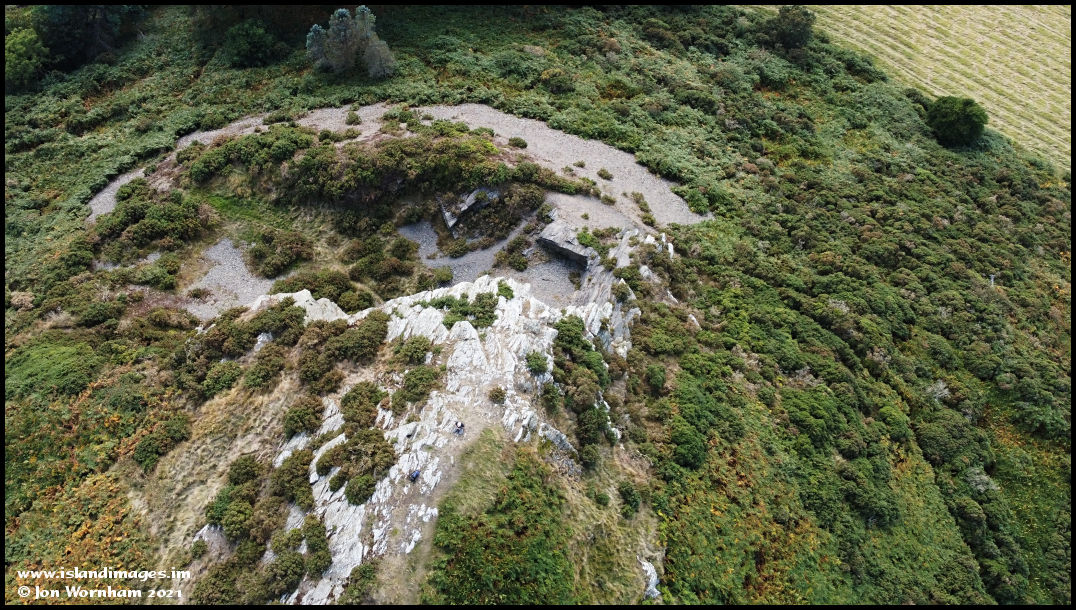 A vertical view from overhead Cronk Sumark, looking down into the old quarry.