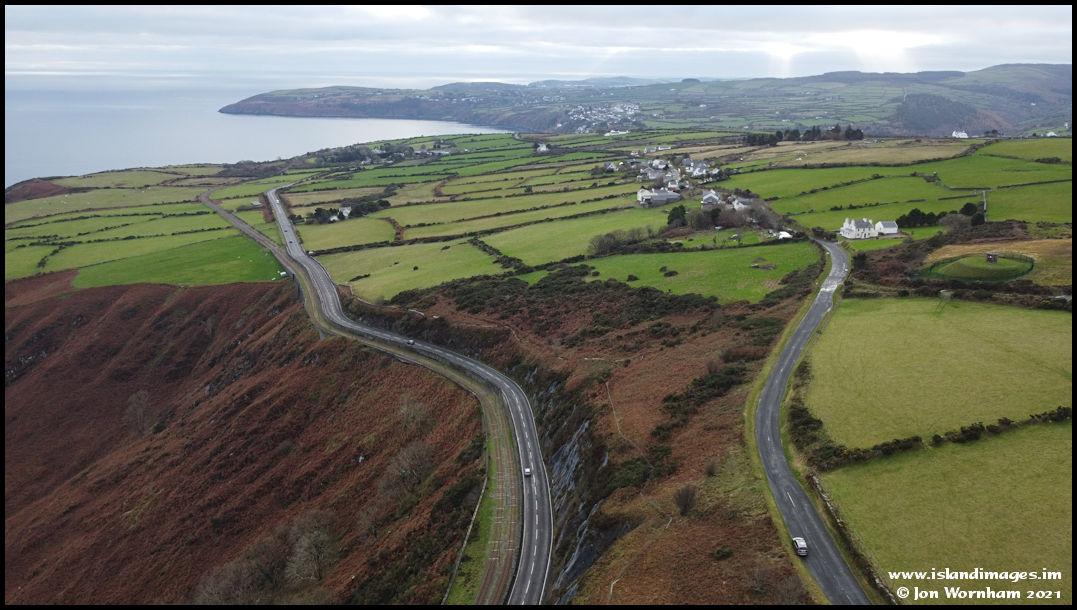 Looking along roads and railway to Ballaragh, Laxey and Clay Head.