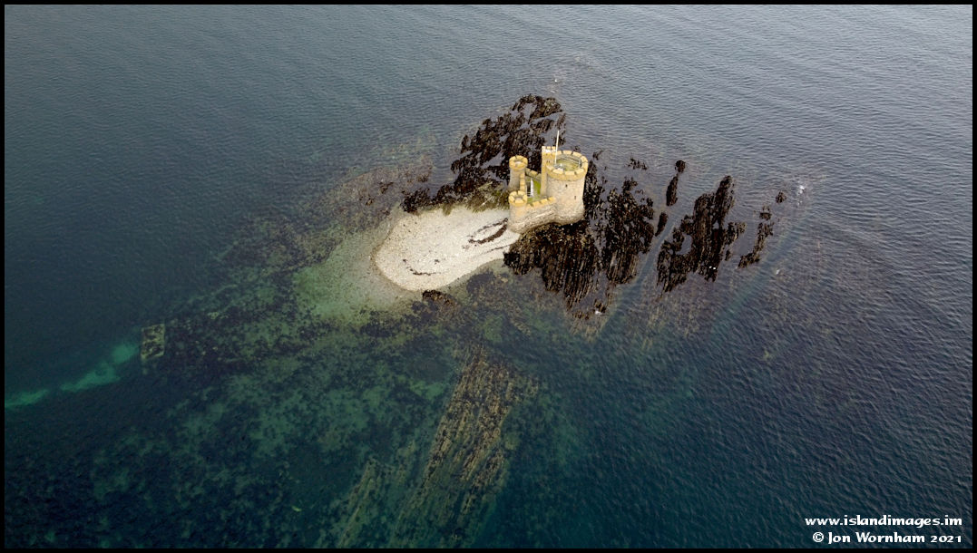 A semi vertical view of the Tower of Refuge. It's a fairly high tide which is hiding most of the Conister Rock, which was a serious hazard to shipping in the days of sail. The tower was constructed in 1832 to shelter shipwrecked mariners.