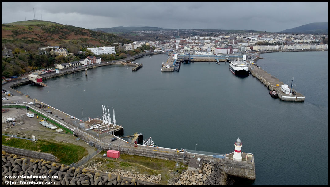 Douglas Harbour, with the Battery Pier lighthouse in the foreground.