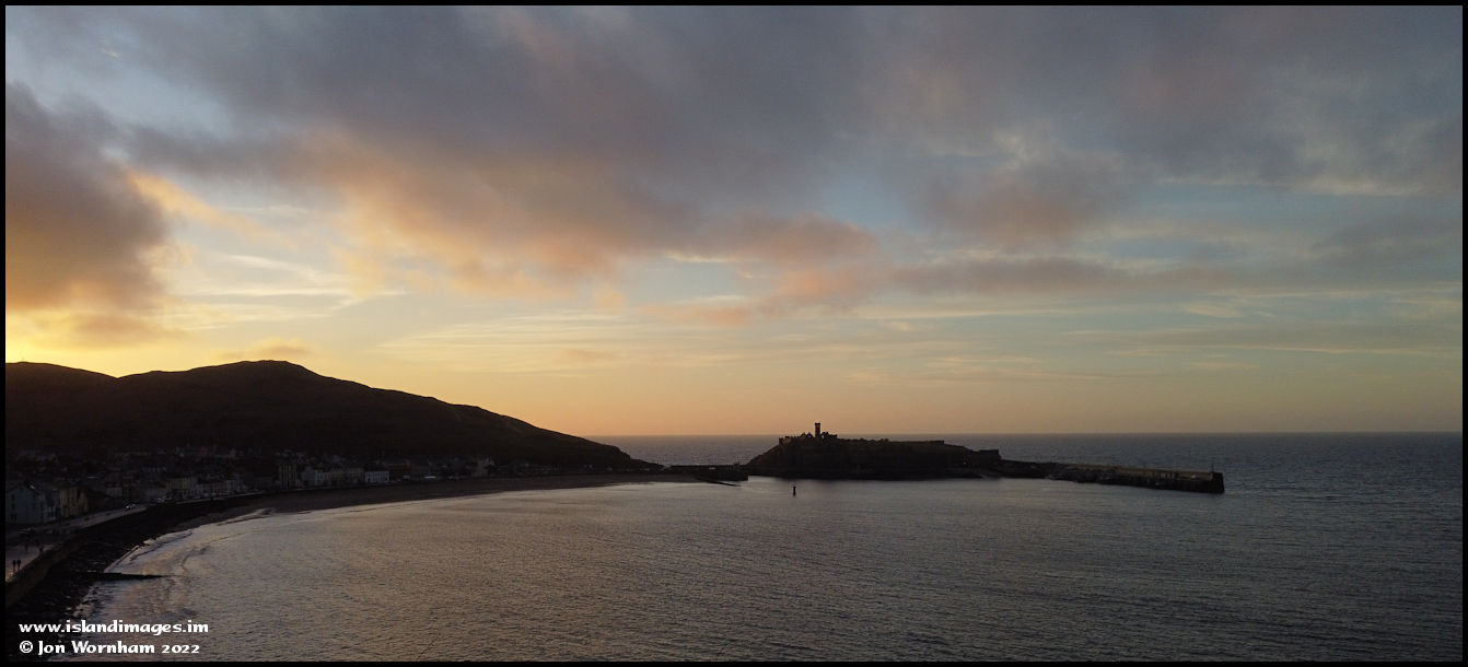 Looking across Peel Bay at sunset, to St Patrick's Isle and the Castle