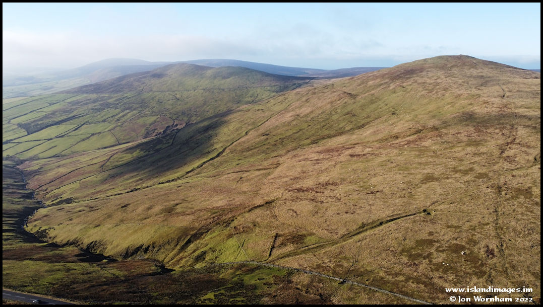 Looking down at the top end of the East Baldwin valley, with Beinn-y-Phott and Carraghan rising above it.