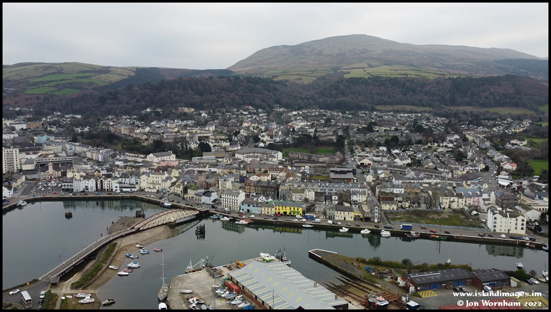 This is a crop from one of the original pictures used to make the panorama that follows, but showing a closer view of the swing bridge and inner harbour.