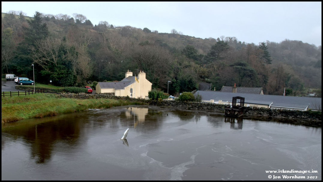 After landing back to change over to the Litchi software, a low level view across the Salmon Lake, formerly the mill pond for the adjoining corn mill, now a cafe/restuarant.