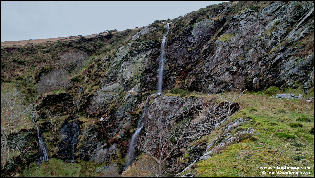 Just after lift off, flying from the highest of the three levels in the quarry, which gives me a good view down into the bowl. More water in the big waterfall, but the other two seem similar to my previous visit.