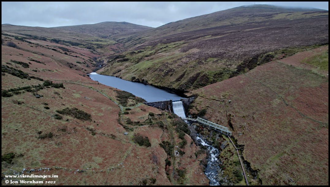 Taking a look along Block Eary Reservoir, where there even seems to be a waterfall where the stream runs in. Snaefell summit just getting in at top right.