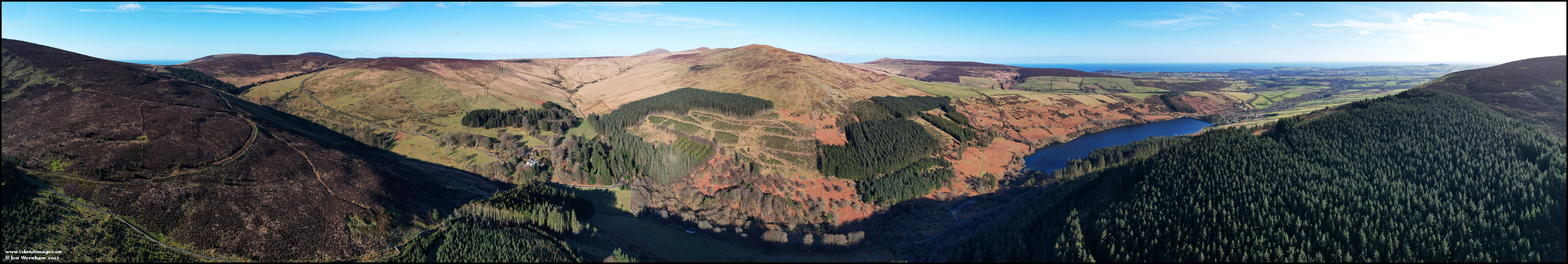 A linear panorama stitched from nine original images, looking from Governor Loch's Road on the left, Past Injebreck House and to the reservoir on the right.
