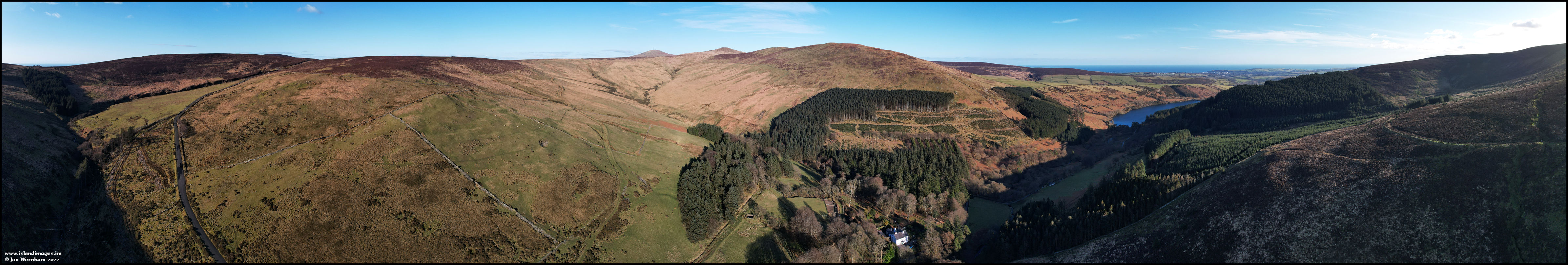 Another stitched linear panorama, from nine original images. Centred on Injebreck, the path of the old carriage lane avoiding the steeper Injebreck Hill Road stands out well.