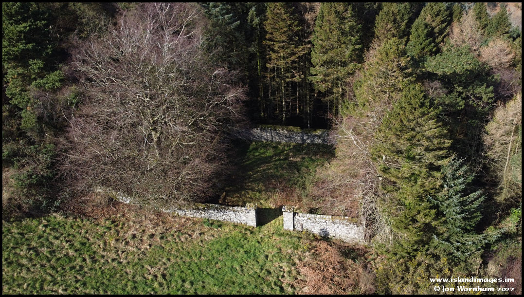 This looks like it might have been a decorative wall around somebody's garden, in fact it enclosed the main gunpowder store for the Great Laxey Mine! The actual store building was demolished at some point.