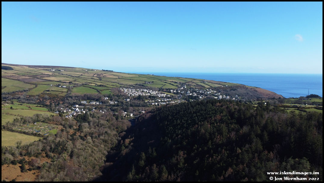 Looking back past Axnfell Plantation towards Laxey, although most of the village is hidden behind the hillside.