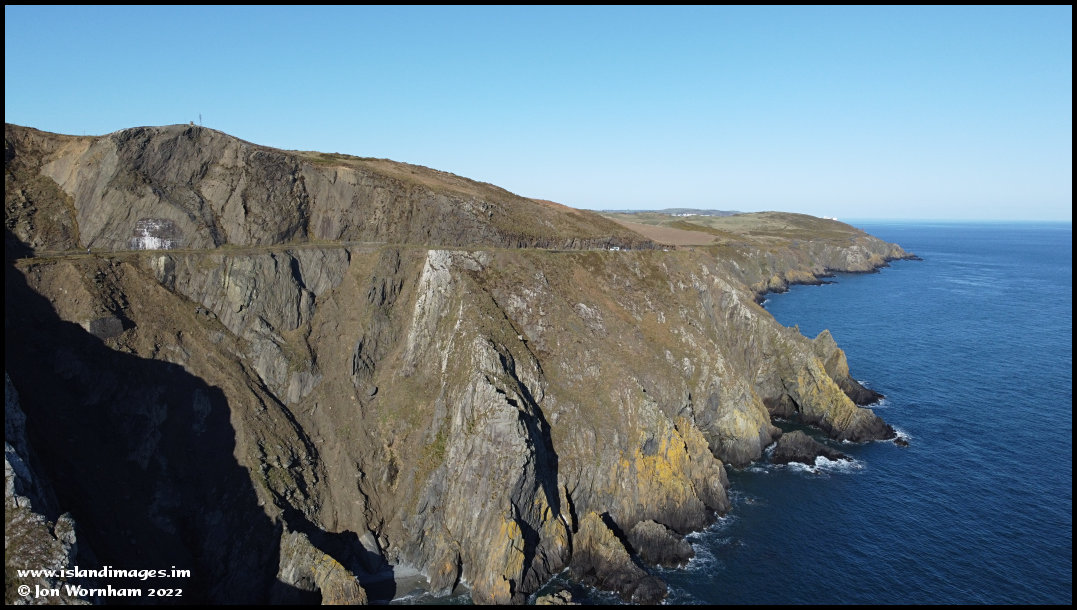 Just airborne from the cliff on the left and looking north along the coast at road level.