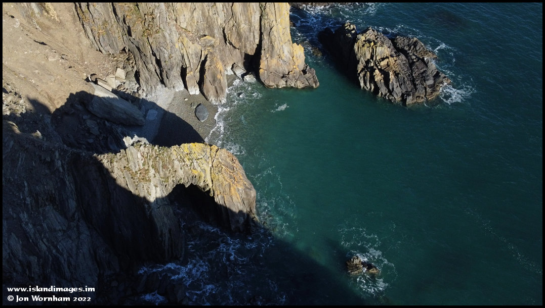 A final look over the cliff edge and down to the roch arch and what looks just like a massive flat pebble on the beach. A giant's skimming stone!