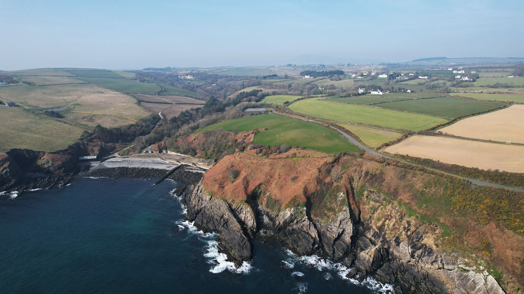 Now looking across the north headland. In its heyday, visitors from Douglas could travel outbound via the Douglas Southern Electric Tramway, spend the day at the busy resort and return via the steam train.