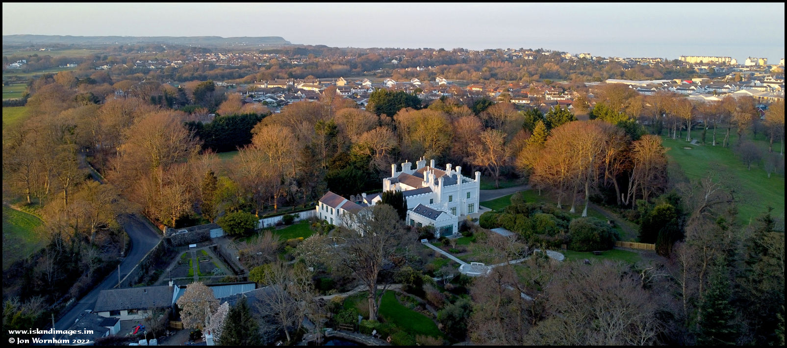 A larger format picture taken while descending to land, the shadow of Sky Hill has just reached the house now, but the town behind is still in the sunshine.