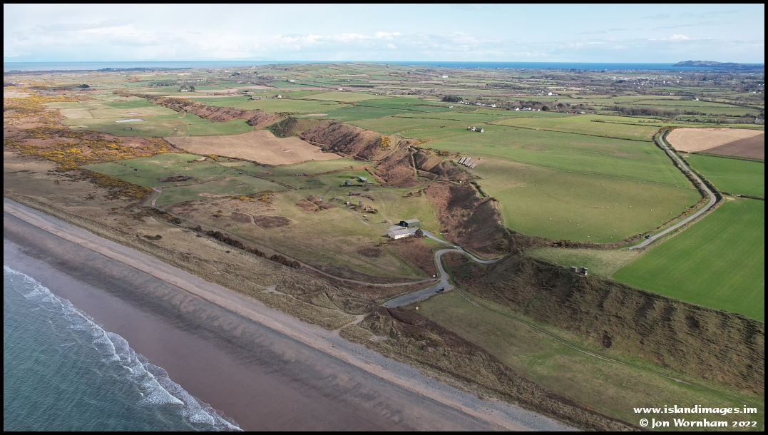 Looking down to where the narrow lane twists down through the former cliffs and to the beach. The buildings on top of the clif are the remains of a former Coastguard lookout post.