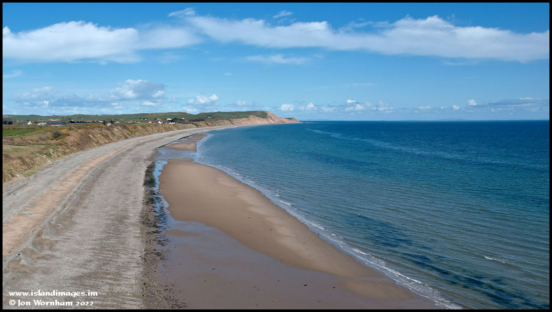 A lower lvel view over the beach looking north past the Dog Mills and to the Bride Cliffs.