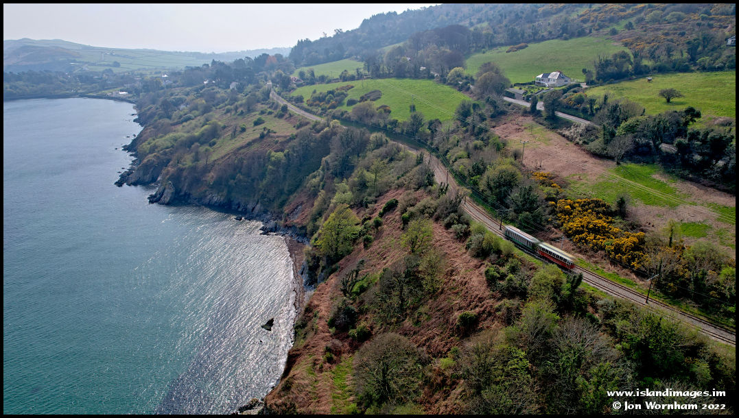 Looking south along the coastline towards Port Lewaigue. This is a three shot 'HDR' picture which has given the MER tram its motion blur.