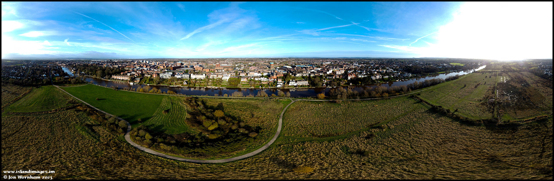 Another panorama from overhead 'Earl's Eye', this time just before mid-day, the sun is still very low at this time of year!