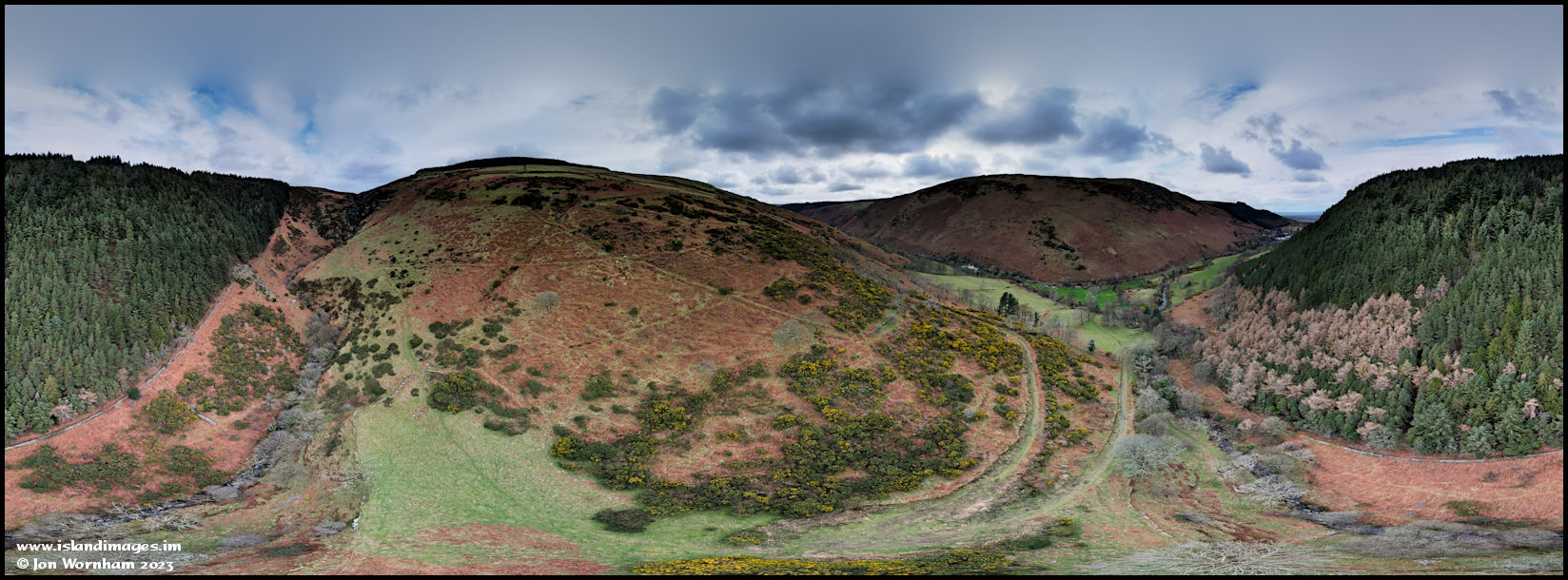 360 degree panorama shot at the entrance to the side valley off Sulby Glen.