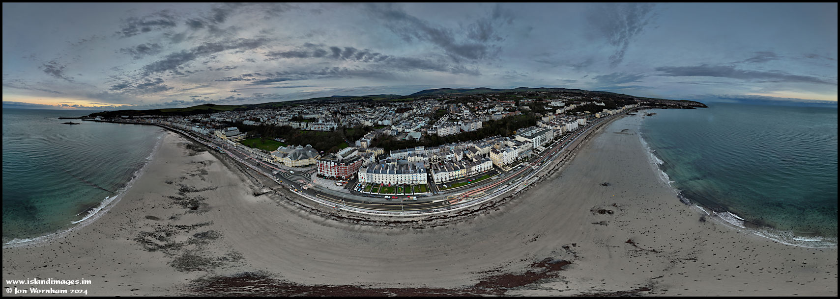 360 degree panorama from overhead Douglas Beach, just off Central Promenade.